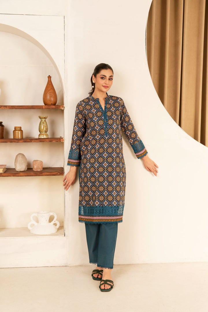 Introducing " Ahika " Kurta-Set suit in cambric from our summer collection – a captivating Dark-Blue with printed dress paired with an intricately designed . Embrace the enchantment of your summer in this elegant ensemble.