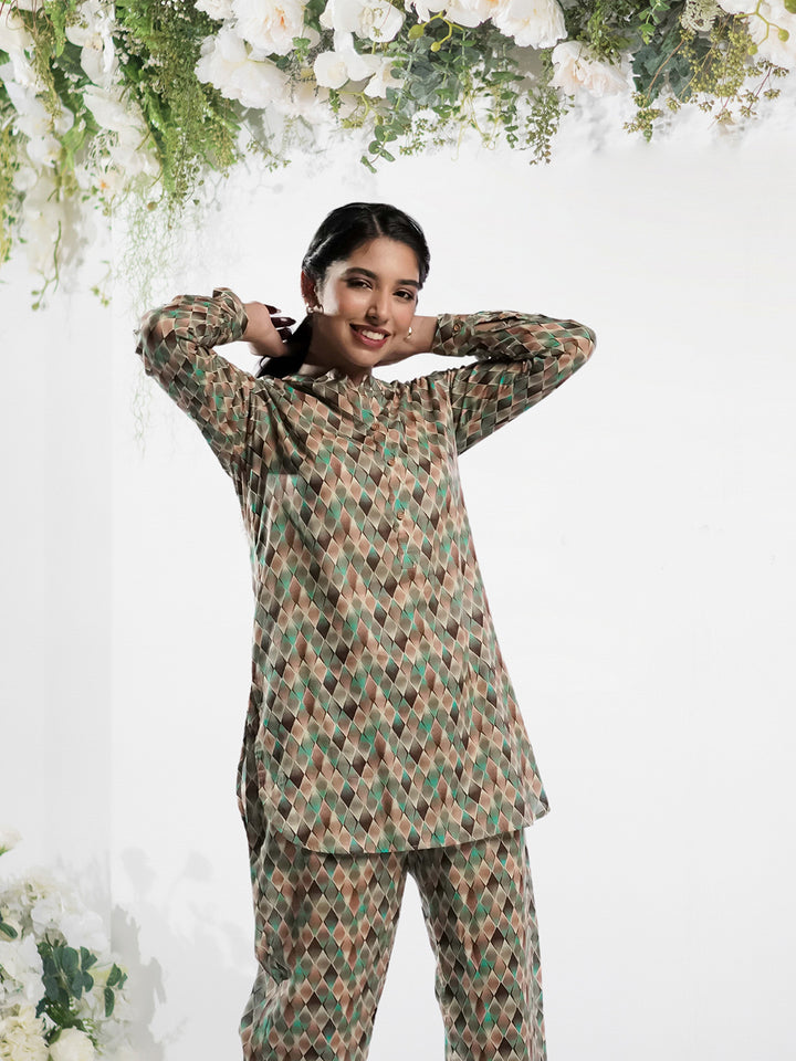 Soft Cambric Stitched-Color Splash Co-ord Set