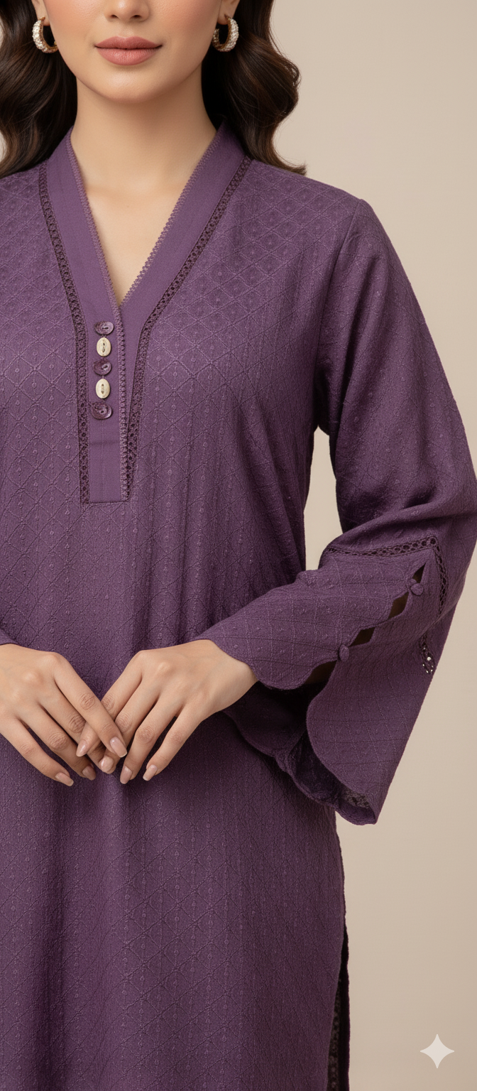Elevate your style statement with our Fariba ChikanKari Shirt Piece Shirt accented with Chicken-Kari and stitching details.