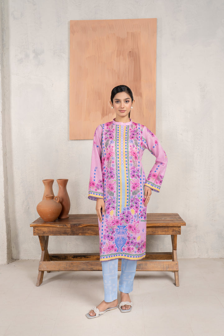 Introducing " Floral printed " 2piece suit in cambric from our EID Collection – a captivating pink with printed dress paired with an intricately designed . Embrace the enchantment of your eid in this elegant ensemble