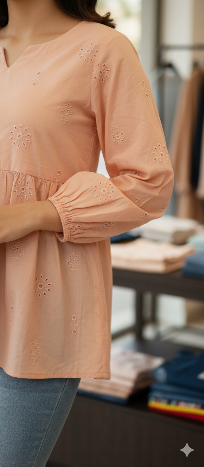Elevate your style statement with our Peplum Shirt accented with ChikanKari and stitching details.