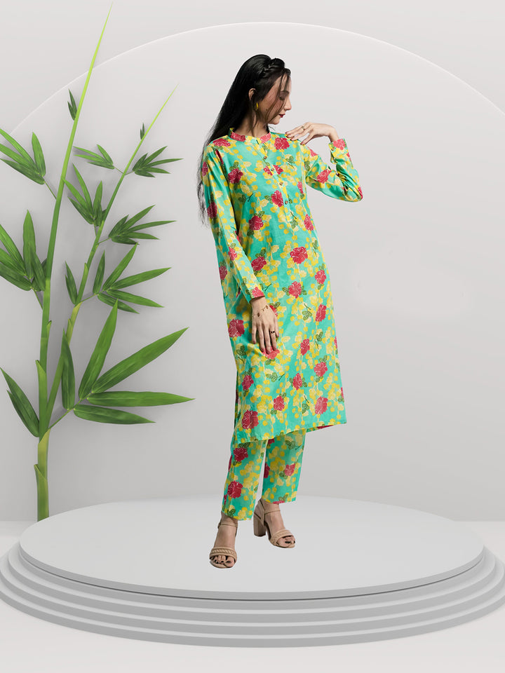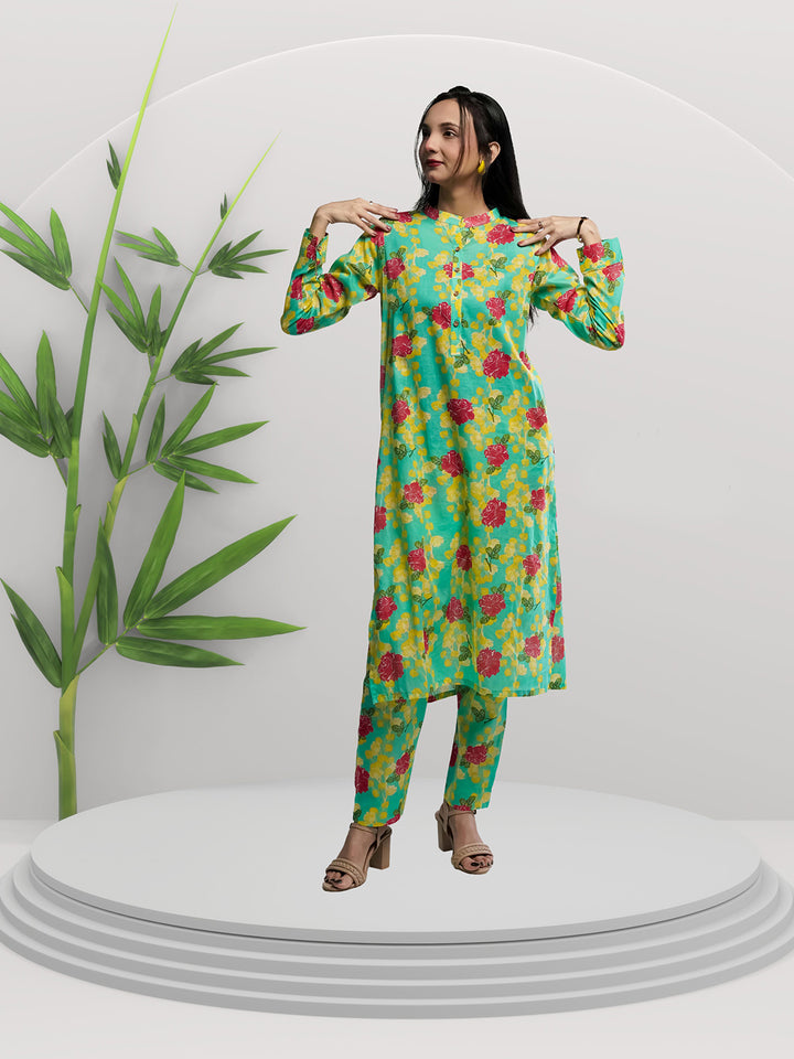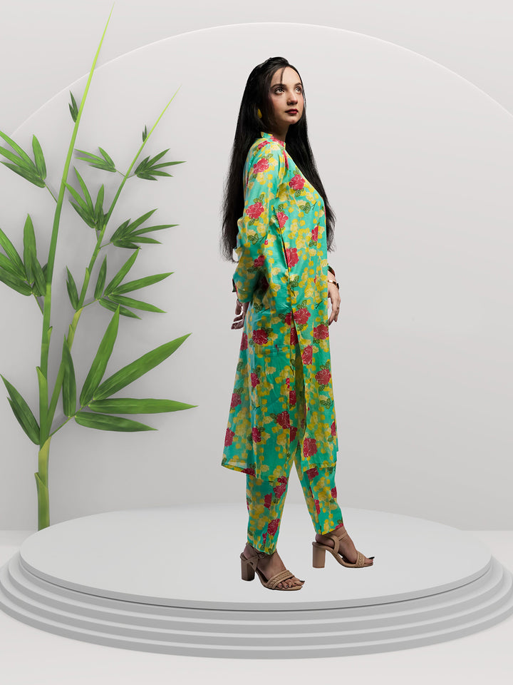 This charming seafoam green dress features a lovely floral print, crafted from high-quality cambric fabric. The elegant floral design adds sophistication, making it a perfect choice for a variety of occasions. Lightweight and comfortable, this dress is ideal for warm weather and can be styled for casual outings, formal events, or special occasions. Its versatility and fashion-forward appeal make it a standout piece in any wardrobe.